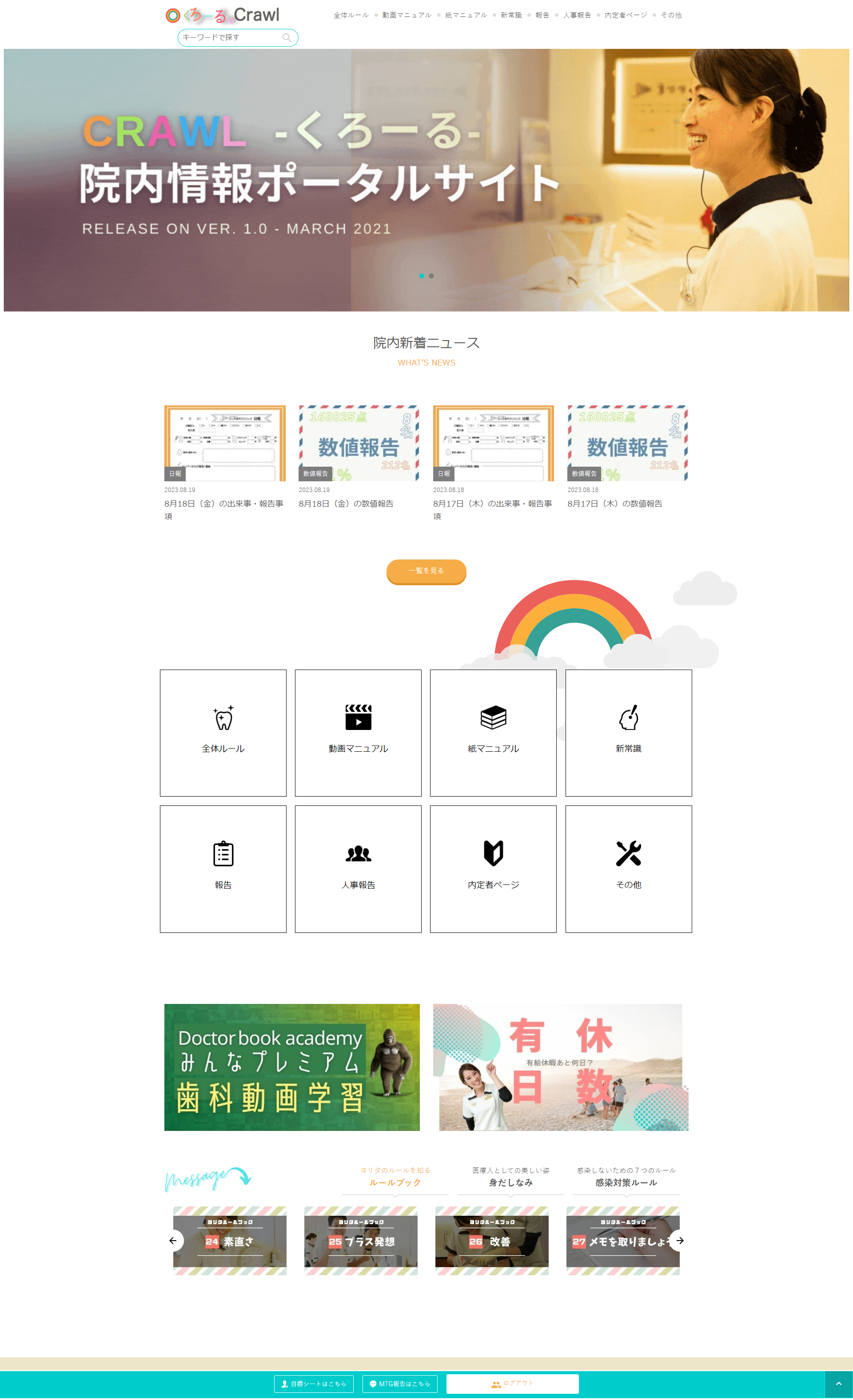 企業ポータルサイト「くろーる」 [time] 2023.08.20 一覧へ 関連記事 ニュース 2023.08.15 テスト2 ニュース 2023.07.22 テスト1 ニュース 2023.06.18 たね:サイトオープン ILLUST 2023.07.09 ILLUST 4 2023.07.06 ILLUST 3 2023.07.06 ILLUST 2 MOVIE 2023.08.18 歯科医師採用動画(ヨリタ歯科2021) 2023.08.18 新卒採用ショートムービー(ヨリタ歯科2021) 2023.08.18 上本町ヒルズ歯科クリニック 採用ムービー2021
